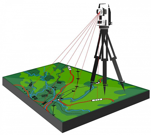 4. Тахеометрическая. Проводится при помощи электронных техеометров. Наиболее популярная на данный момент.